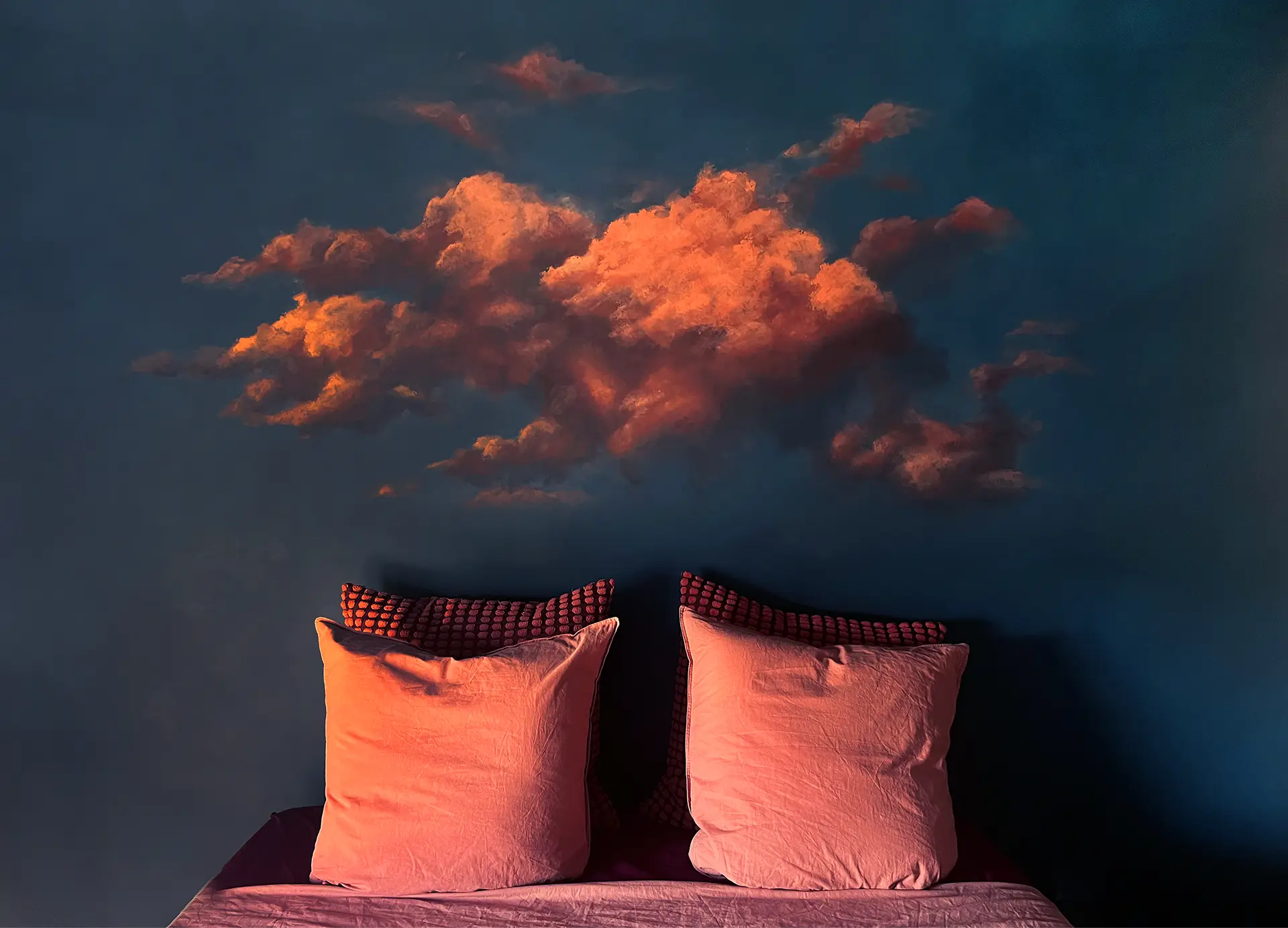 Échelle des motifs : Soit un nuage unique créant un contraste avec la couleur du mur, soit plusieurs.