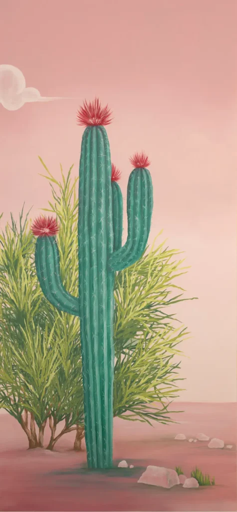 Inspiration : Inspiré par la végétation désertique, sublimée par un contraste chromatique volontairement irréel;